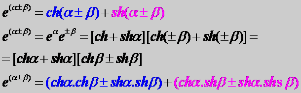 Да намерим: sh(α±β)=? ch(α±β)=?